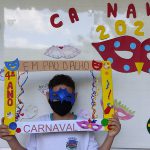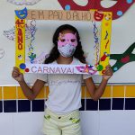 Confeccionei com eles: máscaras, gravatinhas e painel para fotos! Coloquei música (marchinhas) de carnaval, para eles brincarem na sala. Falei da origem do carnaval e que no Brasil iniciou com o Entrudo, que no Rio de Janeiro o destaque são as escolas de samba.