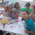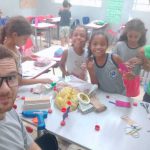 O professor com material reciclável e criatividade, trabalhou habilidades de execução e o ensino de ciências; Através de instruções, confeccionou com as crianças um carro que se move, pois, o balão solta o ar para trás, assim, gerando movimento.
