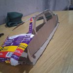 Com o apoio e incentivo da professora, o aluno escolheu os materiais, planejou a montagem e organizou cada detalhe do carrinho, mostrando autonomia e entusiasmo. Durante o processo, explorou diferentes formas de encaixar, colar e decorar as peças, revelando interesse e satisfação em compartilhar seu resultado com os colegas.