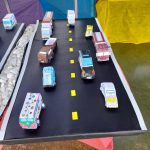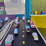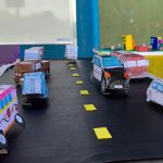 Em uma das atividades utilizamos os carros na forma planificada em objetos 3D, depois analisamos os fundamentos utilizados para passar do plano ao 3D.