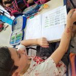 Em seguida, os alunos fizeram a atividade “Estacionamento”, do bloco de atividades do Projeto Escola- Trânsito, onde deveriam colocar a sequência numérica sem repetir os números, se atentando com o sinal de maior.