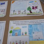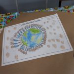 A professora Marcia trabalhou com os alunos do 3º anos A e C a “Carta da Terra”. Primeiramente realizou com os alunos a leitura do texto, realizando uma dinâmica que levasse os mesmos a uma reflexão das posturas de cada um em relação ao ambiente, propondo as seguintes questionamentos: “Como é a Terra, nosso planeta?”, “Como é a vida na Terra, quem mora nela?”, “Quais são os tipos de vida que existem na Terra?”, “Como era antigamente o nosso planeta e como ele está hoje?”, “Porque nosso planeta está assim, tão poluído?”. Estas e outras questões foram levantadas pela professora para uma reflexão em grupo. Após essa dinâmica organizadas em grupos a professora pediu para que eles construíssem um cartaz desenhando os Princípios da Carta da Terra que representem os problemas ambientais: poluição, lixo, guerra, desmatamento, queimadas, etc, fazendo que os alunos pensassem nesses princípios com atitudes de mudanças para um mundo melhor em todos os sentidos.