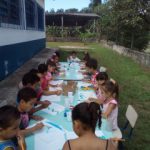 Através da aula de Artes trabalhando o Cartão Postal da Obra da Tarsila do Amaral, foi realizado a atividade com as crianças onde elas puderam mostrar a sua criatividade e fazer o Cartão Postal do Sítio Pé da Serra, local onde é localizada a escola. E a referência desse local são suas montanhas, o qual as crianças retrataram em seus desenhos feito ao ar livre admirando a linda paisagem do Bairro.