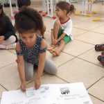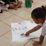 Ao longo do período em que as professoras desenvolveram o tema da dengue com a turma, diversas atividades foram planejadas para promover um aprendizado significativo e ativo, culminando na produção de um cartaz coletivo informativo. Cada criança ficou responsável por uma parte, colorindo o desenho e posteriormente completando o cartaz. As imagens representavam, de forma simples e visualmente atraente, aspectos essenciais do tema, como o ciclo de reprodução do mosquito Aedes aegypti, desde os ovos depositados em água parada até a transformação em mosquito adulto. Além disso, o cartaz continha informações essenciais, descritas em uma linguagem acessível para a faixa etária, sobre as formas de contágio da dengue, destacando que o mosquito é o principal transmissor e que ele se prolifera em ambientes com água parada. Também foram incluídos os principais sintomas da doença, de modo que as crianças pudessem reconhecer e associar esses sintomas com a necessidade de buscar ajuda médica. Para complementar o aprendizado, o cartaz apresentava dicas práticas de como podemos ajudar a prevenir a dengue. As crianças participaram ativamente dessa etapa, sugerindo ações simples que poderiam ser adotadas tanto em casa quanto na escola, como não deixar pratos de plantas com água, jogar fora garrafas e latas, além de sempre avisar um adulto ao encontrar recipientes que possam acumular água.
