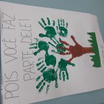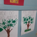 O trabalho foi desenvolvido com a turma A e turma B do pré 1-b, onde foi feito cartaz com carimbo de mãos de todos alunos presentes na aula, confeccionando juntos uma árvore, onde as folhagens foram representadas pelas mãos dos alunos e o tronco, pelo carimbo da mão da professora. O cartaz foi confeccionado após roda da conversa a respeito da conscientização do meio ambiente, importância da plantação e conservação das árvores e de toda planta presente no nosso mundo.