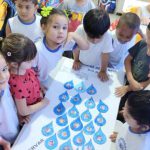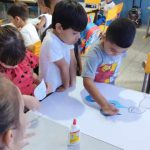 Com intuito de conscientizar as crianças sobre a importância de preservar a água. Realizamos uma atividade de pintura, recorte e colagem de gotinhas de água. Em cada gotinha de água colamos os rostinhos dos nossos alunos, simbolizando o respeito por esse bem tão precioso. Após a atividade retomamos o assunto da água em uma roda de conversa, explicando o que aprendemos nesse dia.