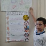Os alunos juntamente com seus familiares confeccionaram cartazes com o tema “Trânsito” para isso pesquisaram sobre o assunto em livros, gibis e internet e trouxeram para expor na escola como uma maneira de conscientizar funcionários, visitantes e alunos sobre a importância de conhecer as leis de trânsito.