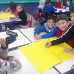 Os alunos foram divididos em grupos para fazer cartazes de conscientização do meio ambiente, eles utilizaram materiais diversos. Sucatas, tintas, barbantes, fitas coloridas, etc. Também criaram um mural de desenhos e poesias sobre o tema.
