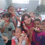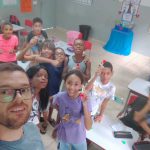 O professor, dentro da cultura maker, de maneira simples e divertida, instruiu os alunos em duplas, com materiais recicláveis, a construírem um dispositivo capaz de arremessar pequenos objetos (catapulta), percebendo como o elástico pode armazenar e liberar energia.