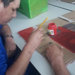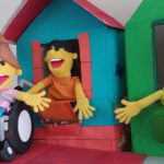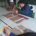 Construção de cenário com papelão, para a apresentação de teatro sobre a Segurança no Trânsito, com os fantoches da Arteris. Trabalho realizado pela professora Marcia de Jesus, com alunos da Educação de Jovens e Adultos da APAE de Rio Negro