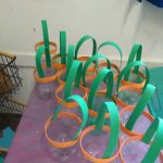 Na semana que comemoramos a Páscoa, realizei com meus alunos uma cesta de para colocar o ovo de Páscoa ofertado pela escola, em parceria com a professora de Arte. Aproveitei também para confeccionar as orelhas da máscara com as sobras dos lápis quando apontados, conscientizando os alunos sobre a importância de reciclar, deixando claro que boa parte do que usamos no dia a dia, podemos reciclar de alguma forma.