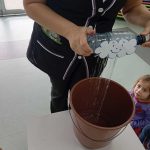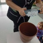 Recursos: Garrafa pet, balde, água, papel, giz de cera
