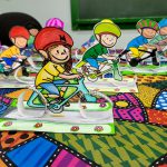 A turma do 6° ano 2, na aula de Arte, refletiu sobre a utilização da bicicleta no trânsito. Os alunos compreenderam que o ciclista é condutor de um veículo e, portanto, deve utilizar a bicicleta de acordo com as regras de trânsito.