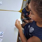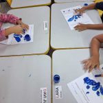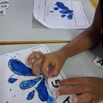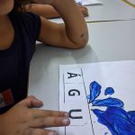 Além disso fizeram atividade de recorte, colagem e pintura com a palavra Água. Aprender de uma maneira divertida é muito mais legal.