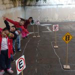 OBJETIVO: Partilhar significados das placas e sinalizações experimentando múltiplas formas de sensações, gestos, deslocamentos, saltos e brincadeiras cantadas.