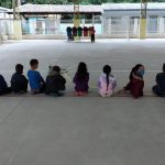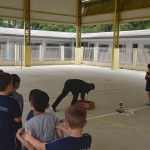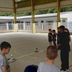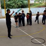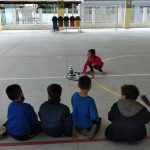 Após foi realizada uma atividade física, o circuito de reciclagem, com o objetivo em dispensar o lixo na lixeira certa.