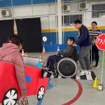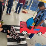 Nesta atividade prática e lúdica, toda a turma do período da manhã participou de um circuito de carrinhos montado no chão do pátio, representando uma cidade. O cenário foi cuidadosamente planejado com faixas de pedestres, semáforos, placas de trânsito, ruas, utilizando materiais recicláveis, fita adesiva, papelão e cartolinas. Cada educando recebia o carrinho de brinquedo feito artesanalmente e foi orientado a simular a condução, respeitando as regras de trânsito. Alguns educandos representaram motoristas, enquanto outros fizeram o papel de agentes de trânsito, pedestres, criando um ambiente interativo e realista. A atividade foi muito bem recebida pelos educandos, que demonstraram entusiasmo e envolvimento durante todo o circuito. Além de aprenderem de forma divertida, colocaram em prática noções básicas de educação para o trânsito, reconhecendo o papel de cada um na construção de um tráfego mais seguro e consciente.