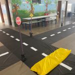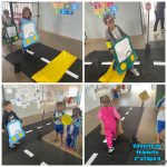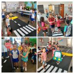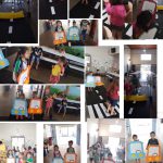 Nesta atividade participaram as turmas do maternal II , as 1 etapas e as 2 etapas. Foi apresentado um vídeo de animação educação para o trânsito, organizamos um circuito do trânsito, utilizando papel Color Set preto, representando as ruas, e fita adesiva para fixação, cartolina branca cortada em tiras para representar as faixas, placas e sinais de trânsito impressos, cabos de vassoura representando o suporte das placas e círculos de papel color set vermelho, amarelo e verde que serão utilizados para representar as cores do semáforo, e etc, convidamos as crianças para realizarem o percurso do circuito utilizando carrinhos produzidos com papel cartão de diversas cores para as crianças maiores e velotrol para os menores, lembrando-os a importância das placas.