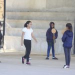 Na quadra poliesportiva, reunimos algumas placas de trânsito para relembrar o que significam. Também fomos relembrando alguns cuidados e deveres dos condutores e pedestres para um trânsito seguro e responsável. Criamos um circuito simulando alguns aspectos já estudados, vivenciando na prática a sinalização e atitudes responsáveis, como ter atenção ao atravessar, atravessar na faixa ou passarela, parar no farol, entre outras situações.
