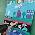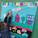 Após a pintura dos desenhos dos meios de transporte cada aluno levou a sua imagem no painel e colou o meio de transporte onde ele trafega. Cada um colou a imagem do seu meio de transporte. Todos acertaram. Foi muito legal!