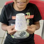 Na comemoração da Páscoa, os alunos receberam copos de isopor reutilizados, que foram transformados em coelhinhos personalizados. Cada criança decorou seu copo com canetinhas coloridas, dando vida a simpáticos coelhos de Páscoa. A atividade uniu o espírito festivo com o aprendizado sobre sustentabilidade, mostrando que é possível comemorar de forma responsável.