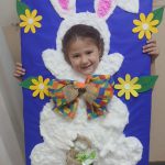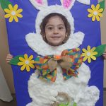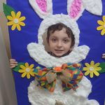 Com o tema páscoa, foi feito com papelão um coelho para as crianças tirarem fotos, elas ajudaram a colar algodão no coelho e enfeitar. Com a atividade, as crianças aprendem a aproveitar materiais que são descartados e viram lixo. Ficaram muito felizes de participarem de toda a atividade.