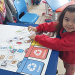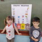 Ação realizada: Através de coletas seletivas, os alunos foram orientados a colocar cada material em seu determinado lugar, incentivando a reciclagem e colaborando com o meio ambiente e com a sustentabilidade do nosso planeta.