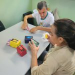 A atividade teve início com a roda da conversa sobre os materiais da coleta seletiva e quais as suas cores correspondentes. Para realização do cartaz, os alunos confeccionaram em caixa de leite lixeiras e nomearam cada uma de acordo com a cor correspondente. Para encerrar, os alunos assistiram a um vídeo explicando sobre coleta seletiva, mostrando os benefícios e a importância do descarte correto para a diminuição da poluição, economia do consumo de energia, água e renda pela comercialização dos recicláveis.