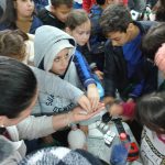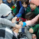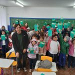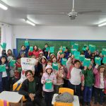 Para finalizar os alunos e funcionários da escola ganharam um saco de tnt e cartaz informativo sobre a recilagem.