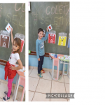 Desenvolvimento: Partimos de uma roda de conversas em que falamos sobre a maneira correta do lixo ser descartado e sobre o conceito da Coleta Seletiva então, apresentei os recursos feitos por mim: saquinhos com plaquinhas coloridas impressas e figuras que representavam cada tipo de lixo: verde-vidro, amarelo – metal, azul-papel, vermelho-plástico, marrom-orgânico; daí distribui aleatoriamente as figuras de cada lixo sobre as carteiras na frente da lousa, passado este primeiro momento chamei cada criança para que pegasse uma figura de lixo e a colocasse no saquinho de lixo correto classificando-o pelas cores; Assim, se alguma criança tinha dúvida de qual cor de lixeira colocar, durante a execução da atividade em si, todos podiam ajudar