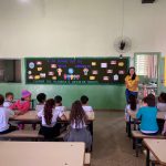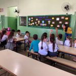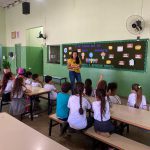 Com os alunos do 1º ano realizaram uma roda de conversa a respeito da coleta seletiva dentro do nosso município, após identificar os conhecimentos prévios dos alunos e se utilizando do painel sobre o meio ambiente, a professora elencou uma discussão sobre a coleta seletiva e a necessidade de se agrupar o lixo em locais adequados. A orientação se estendeu também para ações praticadas em casa com a organização do lixo separadamente.