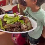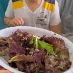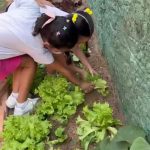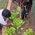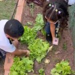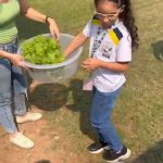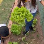 Durante a colheita, o professor incentivou conversas sobre o ciclo de vida das plantas, a importância do solo, do sol e da água para o crescimento saudável, além de discutir questões sobre alimentação saudável e a importância de consumir vegetais frescos.