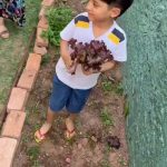 As crianças, munidas ferramentas simples, como pequenas pás e tesouras de poda, foram levadas à horta para iniciar a colheita.