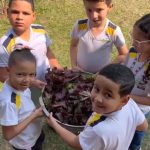 Após a colheita, foi feita uma roda de conversa para os alunos refletirem sobre a experiência: o que eles mais gostaram, o que aprenderam e como se sentem ao ver os frutos do próprio trabalho.