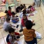 • As crianças participaram ativamente para colorir o desenho.