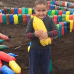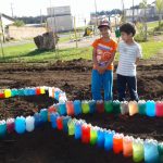 Foi intenso trabalho até fora do horário de aula para colocar água nas garrafas e enterrar na terra, dando um colorido nos canteiros.