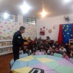 Durante a semana do trânsito, além da exploração da nova revista de histórias em quadrinhos do Zé Quest, a nossa escola recebeu dois representantes da Guarda Civil Municipal de Campina Grande do Sul, a equipe agora conta com agentes responsáveis pelo trânsito nas vias públicas do município.
