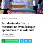 No dia 26/08 o C.M.E.I Professora Bernadete Maria Sedrez da Silva foi para a avenida de acesso a praia de Navegantes desfilar em comemoração ao aniversário da cidade com o tema do projeto Arteris trânsito. O evento é assistido pelos participantes, comunidade, autoridades e equipe de relações públicas. Para este grandioso evento levamos uma faixa alusiva EDUCAR PARA HUMANIZAR O TRÂNSITO, crianças e profissionais com a camiseta utilizada para a formatura dos pequenos multiplicadores e carrinhos representando o trânsito.