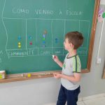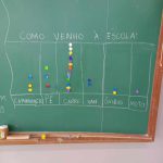 - Questionar as crianças como elas vêm para a escola: carro, ônibus, a pé, moto… Escrever em uma cartolina esses modos, formando colunas. Fazer também um desenho que represente esses modos de vir para a escola.)