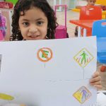 Em seguida, os alunos receberam plaquinhas com algumas orientações do que no trânsito devemos respeitar: