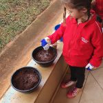 Iniciando com a roda da conversa para comunicá-los que seria o dia do plantio do feijão e como iria acontecer essa atividade. Todos os alunos participaram do processo, cada um contribuindo com uma das etapas, como: colocar a terra no pote, colocar o grão de feijão na terra e molhar. Foi dividido por dias e grupos para molhar e observar a germinação dos feijões, as etapas do seu crescimento e também identificar a necessidade de elementos fundamentais para o seu desenvolvimento como: água, luz solar, nutrientes. Despertando assim o interesse pelo cuidar.