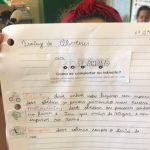 Para iniciarmos a aula as crianças receberam uma tira com várias integrantes do trânsito como: ciclista, motociclista, motorista, passageiro, guarda e pedestre, logo após a imagens as crianças escreveram como cada integrante tem que se comportar no trânsito e a importância de respeitar as regras.