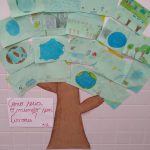 Aproveitando o tema do dia da árvore a professora Rayssa provocou os seus alunos do 3º ano A com a questão de como seria o mundo sem árvores. Realizaram um debate formando uma lista de opiniões como: muito calor, sem vida, sem ar puro para respirar, entre outras. Em seguida representaram com ilustrações para formar o painel que ficou em exposição no corredor.