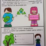Nesta aula sobre educação ambiental, os alunos primeiramente completaram as frases corretamente com as palavras previamente descritas, relacionadas à palavra Reutilizar, juntamente com o símbolo da reutilização/reciclagem.