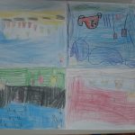 Foi desenvolvido um trabalho na escola de conscientização sobre o trânsito e depois cada aluno teria que produzir um desenho sobre situações de trânsito que remetam es escolhas seguras e que acarretam a proteção à vida tanto de motoristas quanto pedestres.