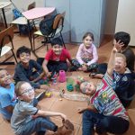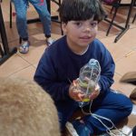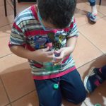 Em seguida, com o apoio dos professores, as crianças confeccionaram seus próprios brinquedos utilizando materiais recicláveis, como: