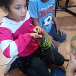 Ao final, foi feita uma brincadeira coletiva, onde todos puderam experimentar e compartilhar seus brinquedos, resgatando a alegria das brincadeiras populares antigas.