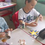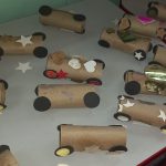 Alunos confeccionaram carrinhos com rolinhos de papel higiênico, aprendendo também a questão da importância da reciclagem de materiais. Após a confecção as crianças puderam brincar com os carrinhos.