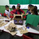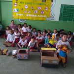 Os alunos do 2º anos confeccionaram carrinhos. Nesta atividade, trabalhamos a criatividade e a imaginação das crianças para que elas construíssem os próprios carros, colocando em prática os conhecimentos de trânsito possíveis para as ações feitas dentro dos carrinhos.