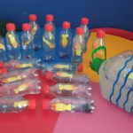 Confecção de garrafas sensoriais representando aquários.